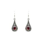 Red stone oxidised silver earrings